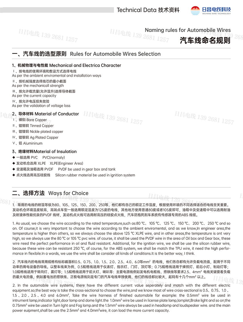 [導讀]: 汽車線命名規(guī)則、汽車線的選型原則:1機械物理與電性能、2導體材料、3絕緣材料、汽車線選擇方法